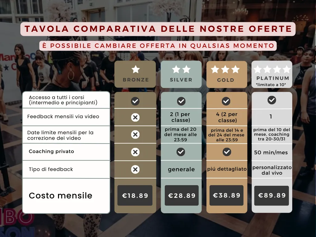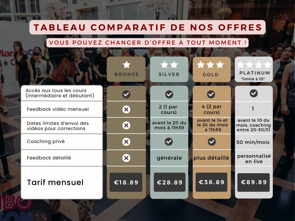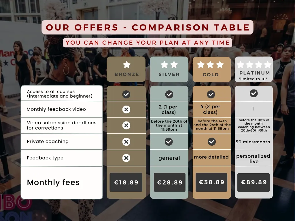 Cet abonnement permet aux élèves de niveau intermédiaire ou plus de travailler leur technique de body movement, afin de pouvoir ensuite la mettre directement en application lors des cours de niveau intermédiaire.